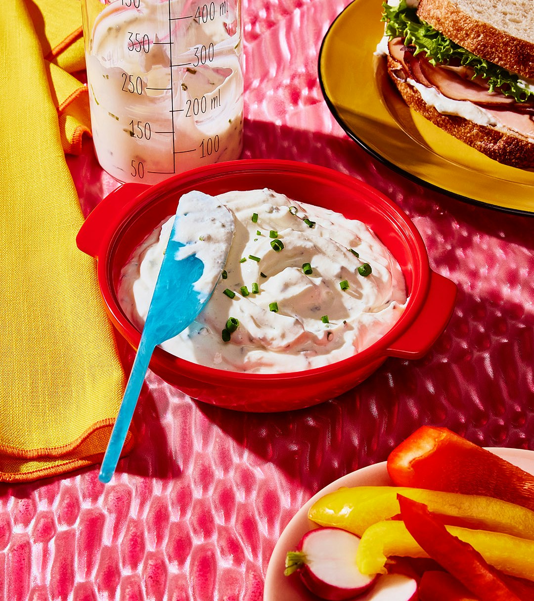 Une sauce qui peut à la fois servir de sauce à sandwich ou de trempettes à crudités.