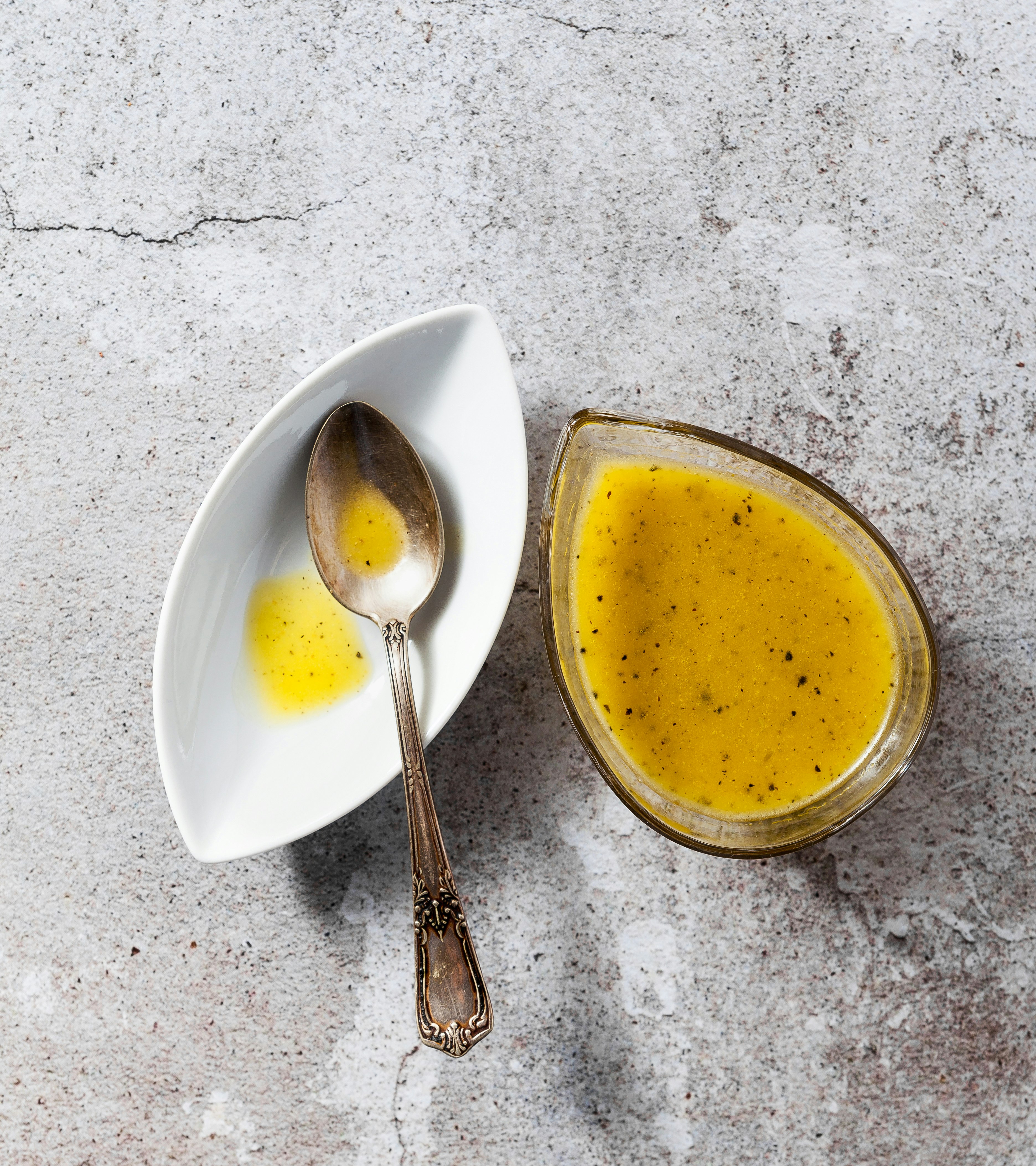 Ajouter ensuite la moutarde, la livèche, l’huile et bien assaisonner.