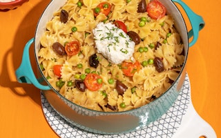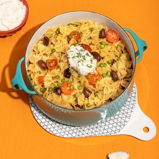 One pot pasta aux olives, tomates et petits pois