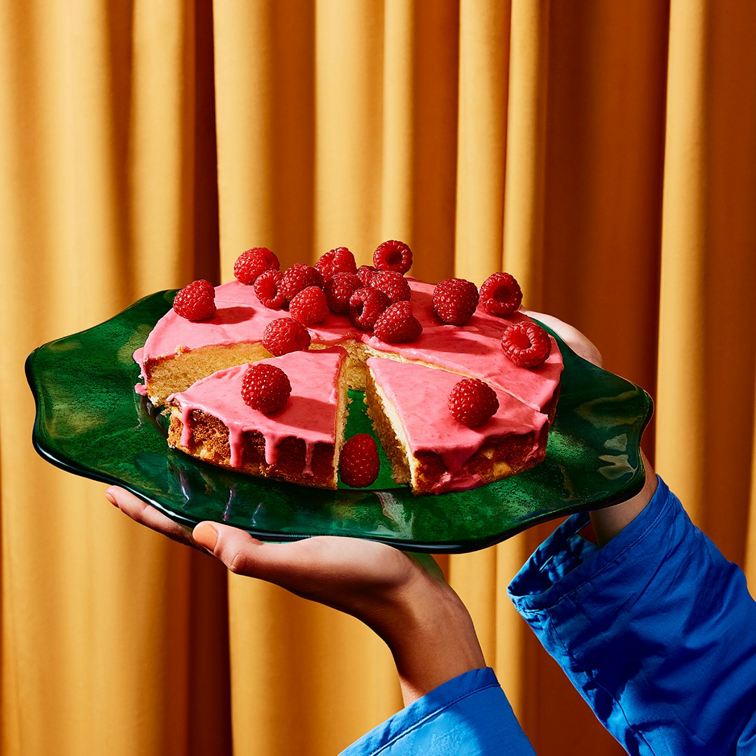 Gâteau au yogourt à la vanille, glaçage à la framboise
