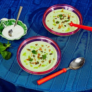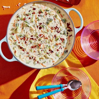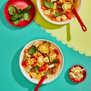 Soupe-repas aux légumes, aux tortellinis et au halloumi