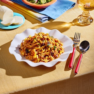 Spaghetti épicé au chorizo et au halloumi aux épices cajuns