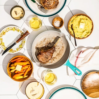 Tataki de bison, mousseline de champignons, vinaigrette au fenouil et maïs mariné