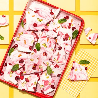 Écorces glacées au yogourt, aux framboises et aux pistaches