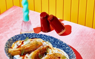 Gravlax à la betterave, crème fraîche au raifort et à l’aneth