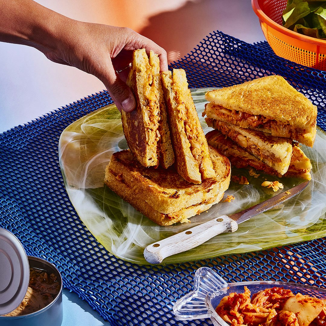 Sandwichs fondants au thon, au fromage et au kimchi