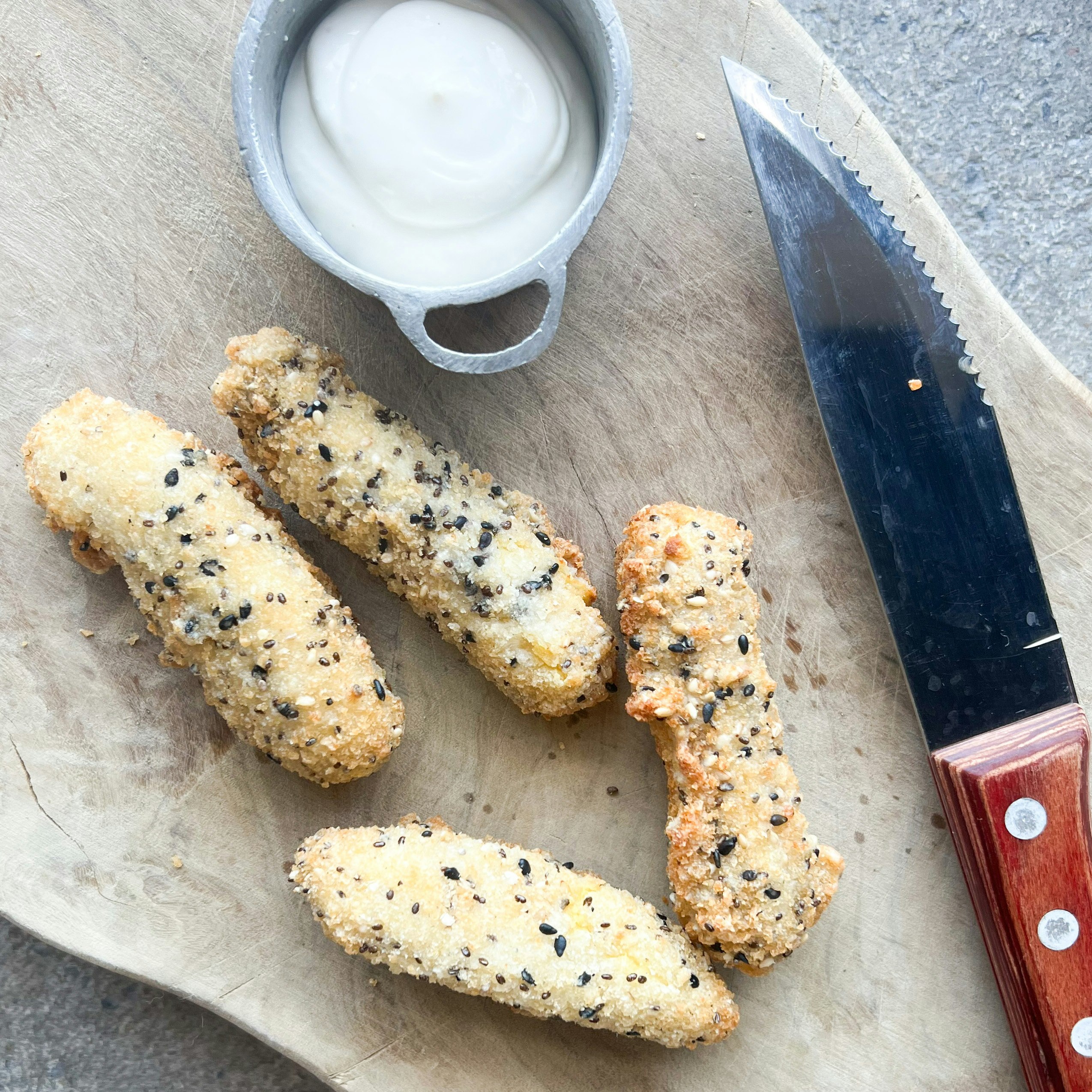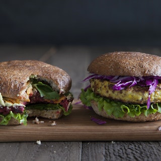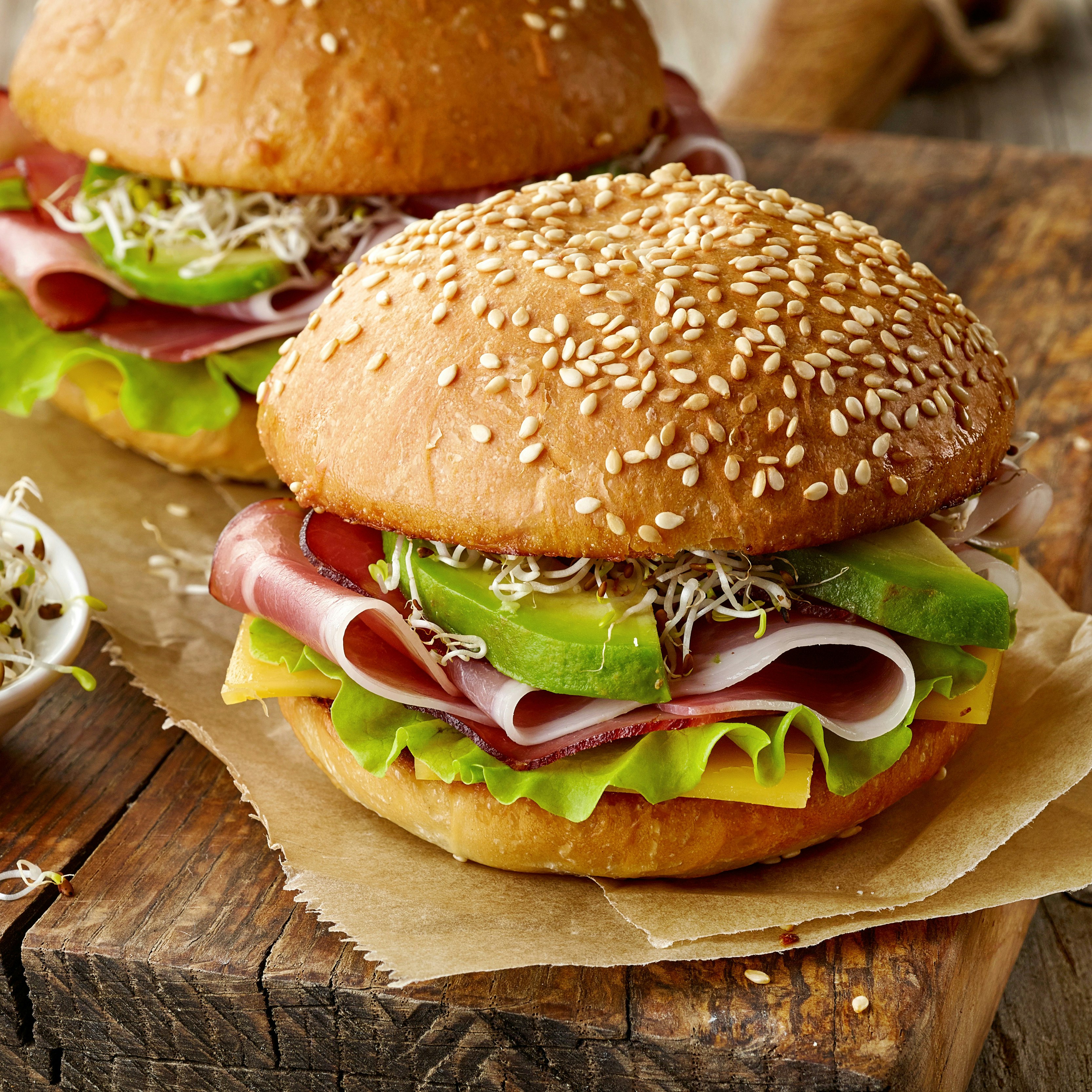 Burger aux pois chiches, sauce au fromage à la crème et au citron confit