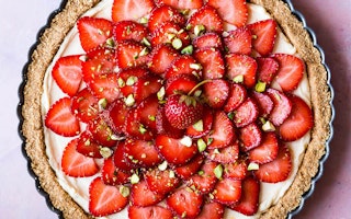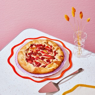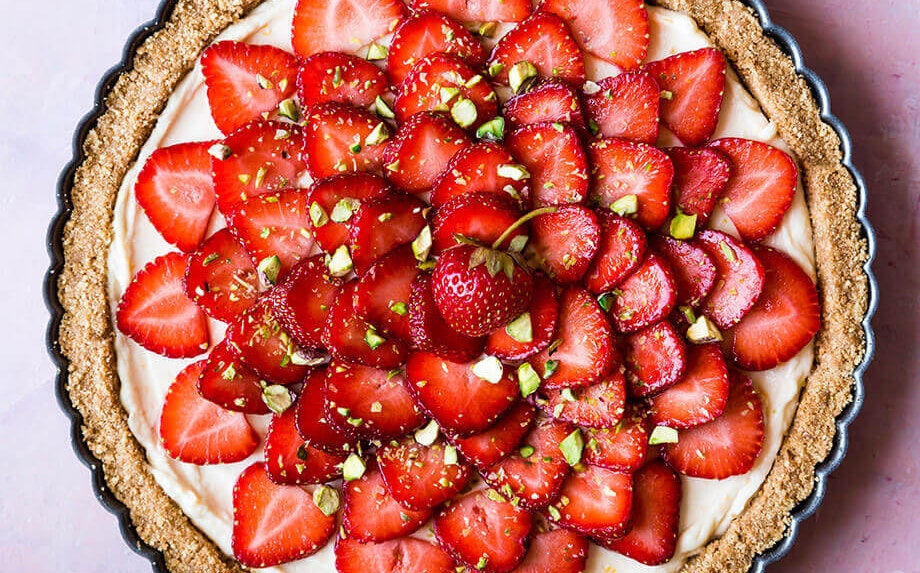 Tarte à la crème d’amande, aux fraises et à la rhubarbe