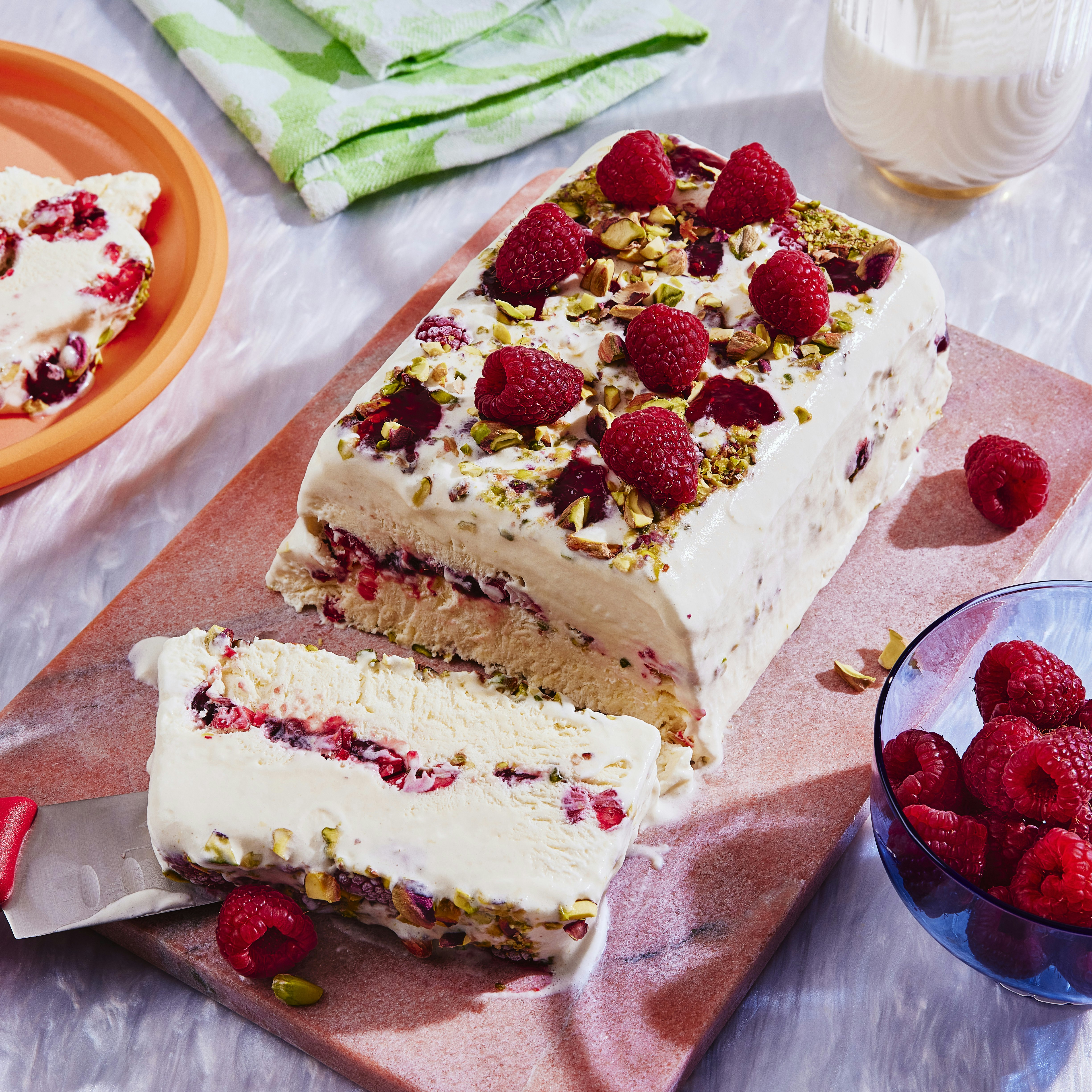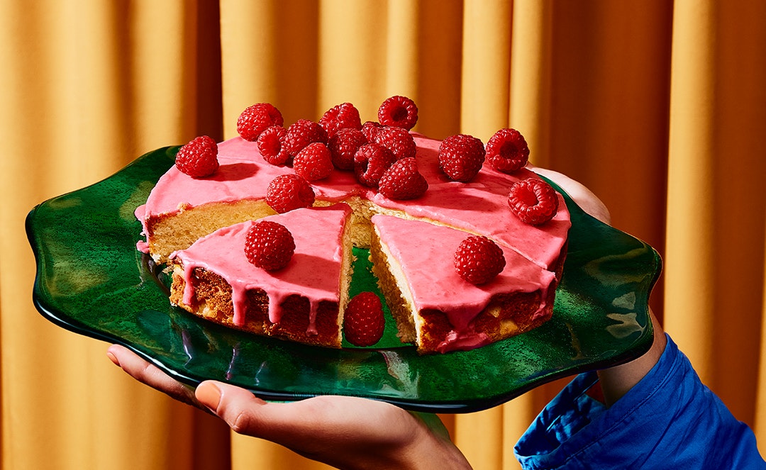 Gâteau au yogourt à la vanille, glaçage à la framboise
